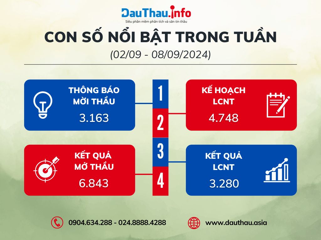 Trong thời gian từ 02/09 - 08/09/2024, có gần 4.000 kết quả mở thầu đã được đăng tải trên Hệ thống mạng đấu thầu quốc gia.