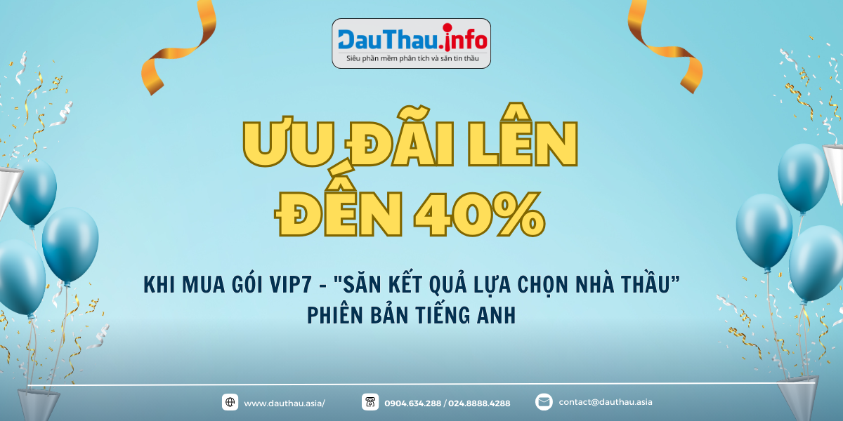 Xem chi tiết tại: Ưu đãi lên đến 40% khi mua gói VIP7 - "Săn kết quả lựa chọn nhà thầu” phiên bản tiếng Anh